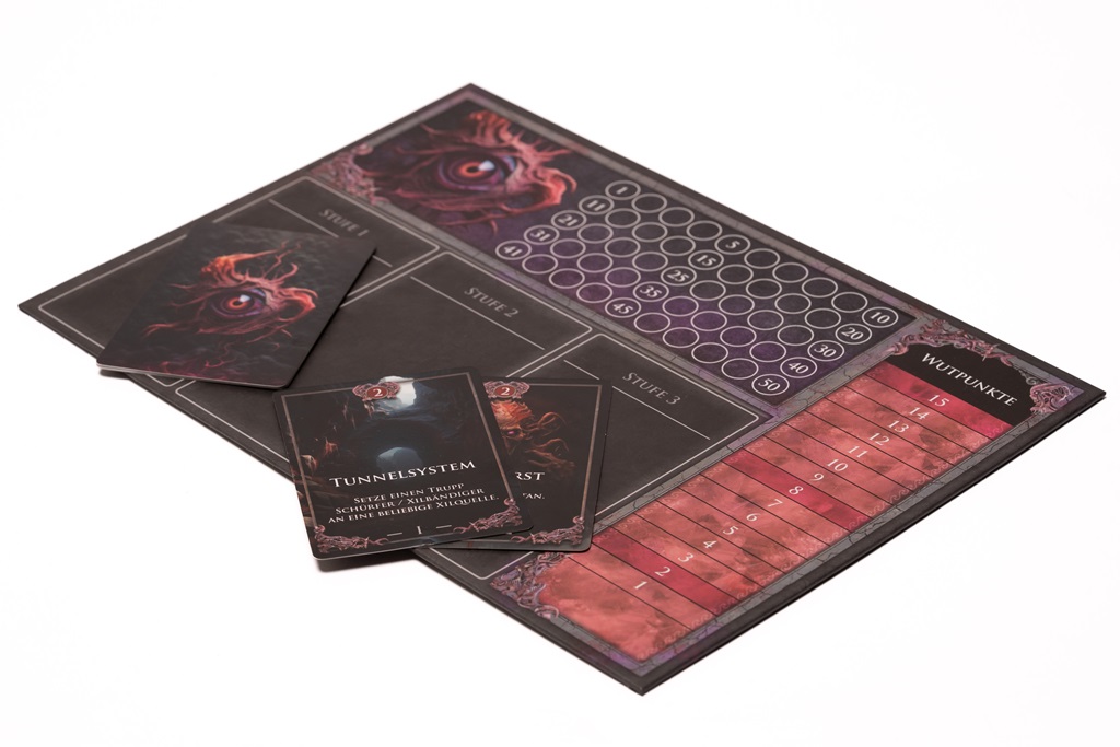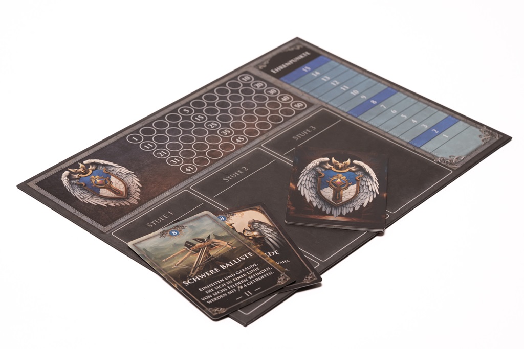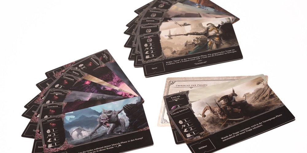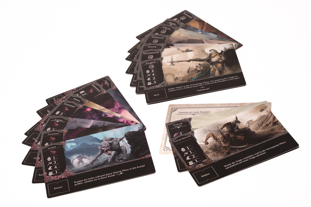 Das Herzstück des Spiels ist die 15x15 Spielmatte, auf der sich euer Schlachtfeld entfaltet. Hier führt ihr eure Streitkräfte ins Gefecht, erobert strategisch wichtige Positionen und sichert euch wertvolle Ressourcen. Das Gelände bietet dabei nicht nur strategische Möglichkeiten, sondern birgt auch unerwartete Gefahren. Eure Einheiten können sich im Nah- und Fernkampf messen und ihre typenspezifischen Fähigkeiten einsetzen. Und über allem thronen die Titanen - mächtige Kommandoeinheiten, die mit ihren einzigartigen Fähigkeiten das Schlachtfeld nach eurem Willen formen.